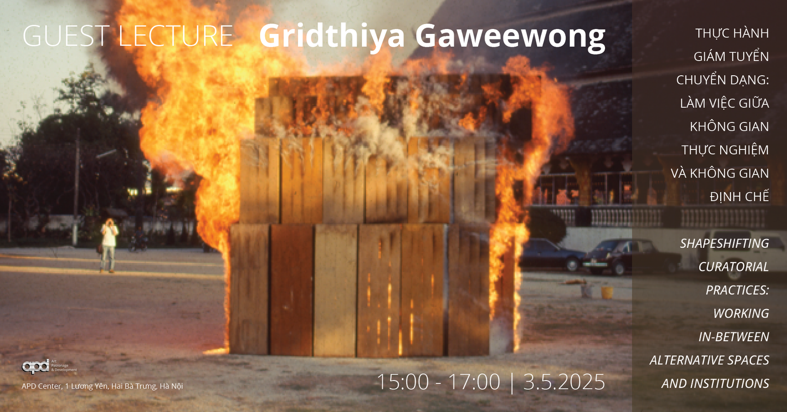 Mời bạn tới tham gia buổi trò chuyện cùng Gridthiya Gaweewong, một trong những curator nổi bật, dạn dày kinh nghiệm của khu vực Đông Nam Á, Giám đốc nghệ thuật của Trung tâm Nghệ thuật Jim Thompson (Bangkok, Thái Lan), thành viên Finding Committee for Artistic Direction (Hội đồng tuyển chọn định hướng nghệ thuật) của Documenta 16, Kassel, Đức (2027). Cô cũng là chuyên gia khách mời của APD trong chương trình Khóa thực hành Curating Tầm Tã 2025 hiện đang diễn ra tại Hà Nội.